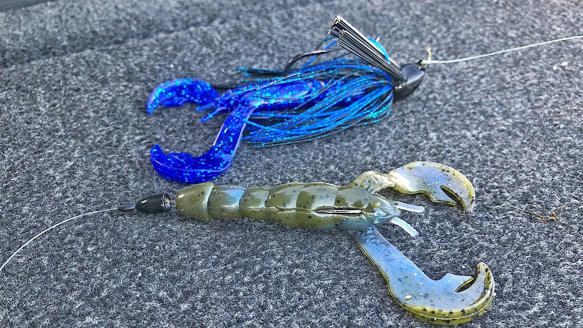 Soft plastics such as the Strike King Rage Craw produce a subtle kicking motion that adds realism when worked slowly across the bottom.